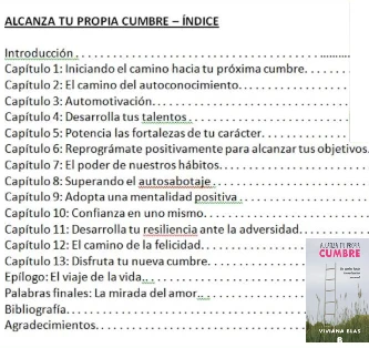 Un camino hacia tu realización personal Alcanzar la realización personal consiste en desarrollar nuestro potencial al máximo de sus posibilidades para poder ser todo lo que podemos llegar a ser, sintiéndonos en armonía con nosotros mismos, con los demás y viviendo una vida plena de sentido. Todos tenemos distintas capacidades y talentos que podemos desplegar para crecer como personas, mejorar nuestra calidad de vida y hacer nuestro aporte positivo a la comunidad. Para poder alcanzar nuestras metas, necesitamos crecer interiormente. Este libro te permitirá adquirir diversos recursos conceptuales y prácticos provenientes de la psicología positiva, la inteligencia emocional, la psicología cognitiva y la psicología humanista, que fortalecerán tu personalidad para que puedas embarcarte en un proceso continuo de crecimiento personal. Podrás profundizar en el conocimiento de ti mismo, motivarte, potenciar tus fortalezas, desplegar tus habilidades, reprogramar tu mente de manera positiva, aumentar tu autoconfianza, desarrollar tu resiliencia, disfrutar de tu presente y alcanzar un estado interior de felicidad. Superarnos a nosotros mismos es lo que nos permite afrontar los desafíos que nos presenta la vida. A mayor crecimiento interior, mayores retos podremos abordar. Cada vez que alcanzamos una cumbre, estamos concretando un nuevo sueño en la realidad.